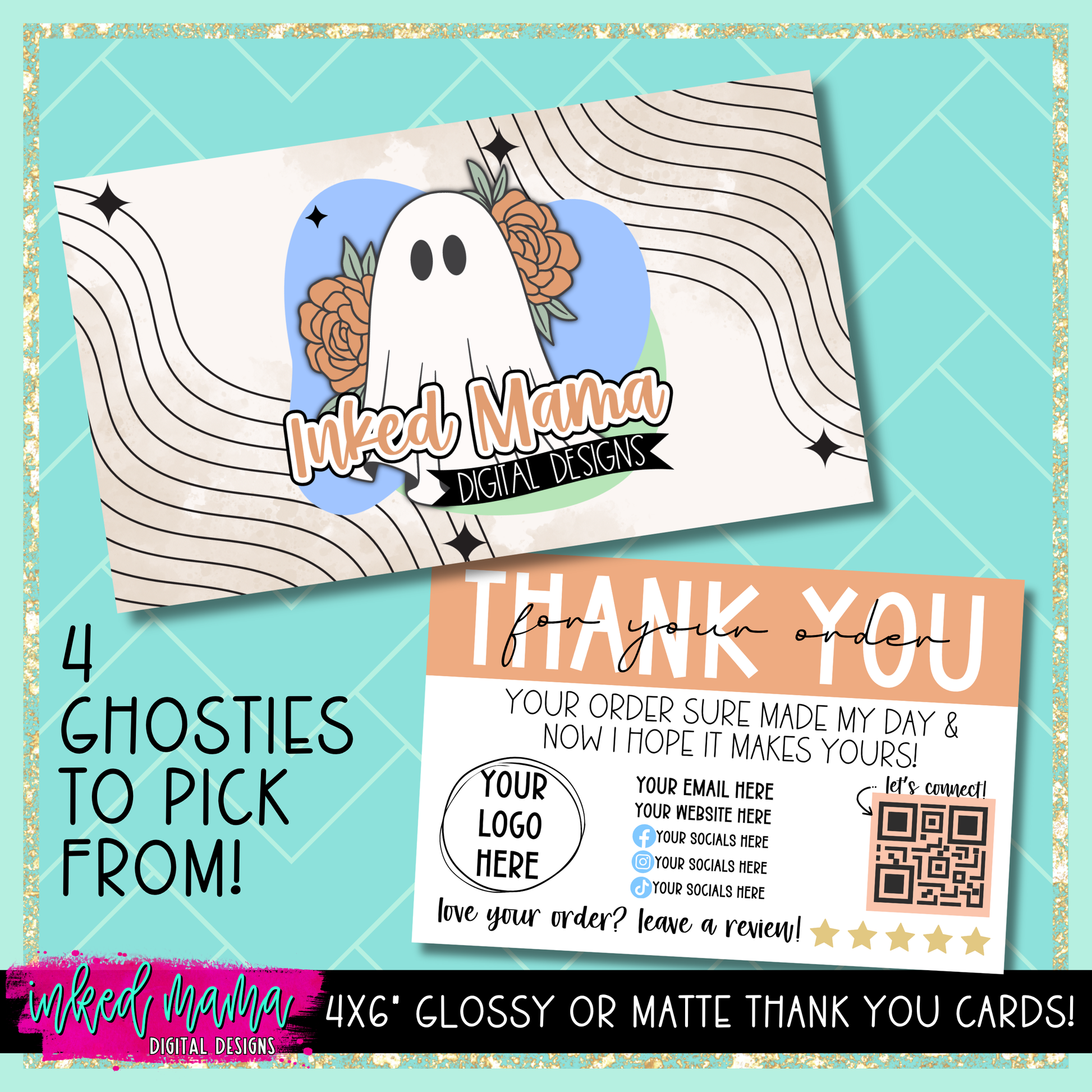 4x6" Ghostie Thank You Cards | Small Business Packaging Fillers