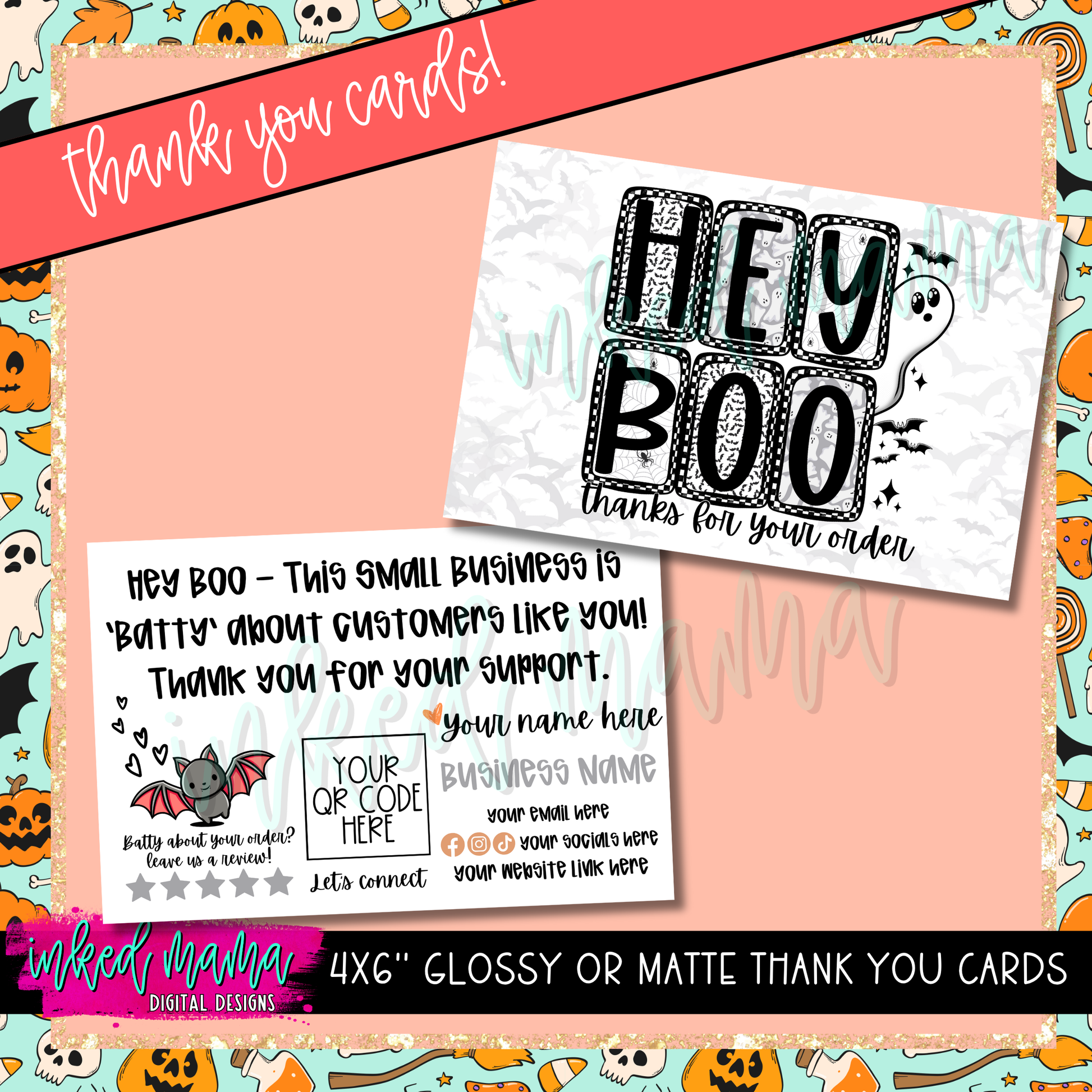 4x6" Hey Boo Thank You Cards | Small Business Packaging Fillers