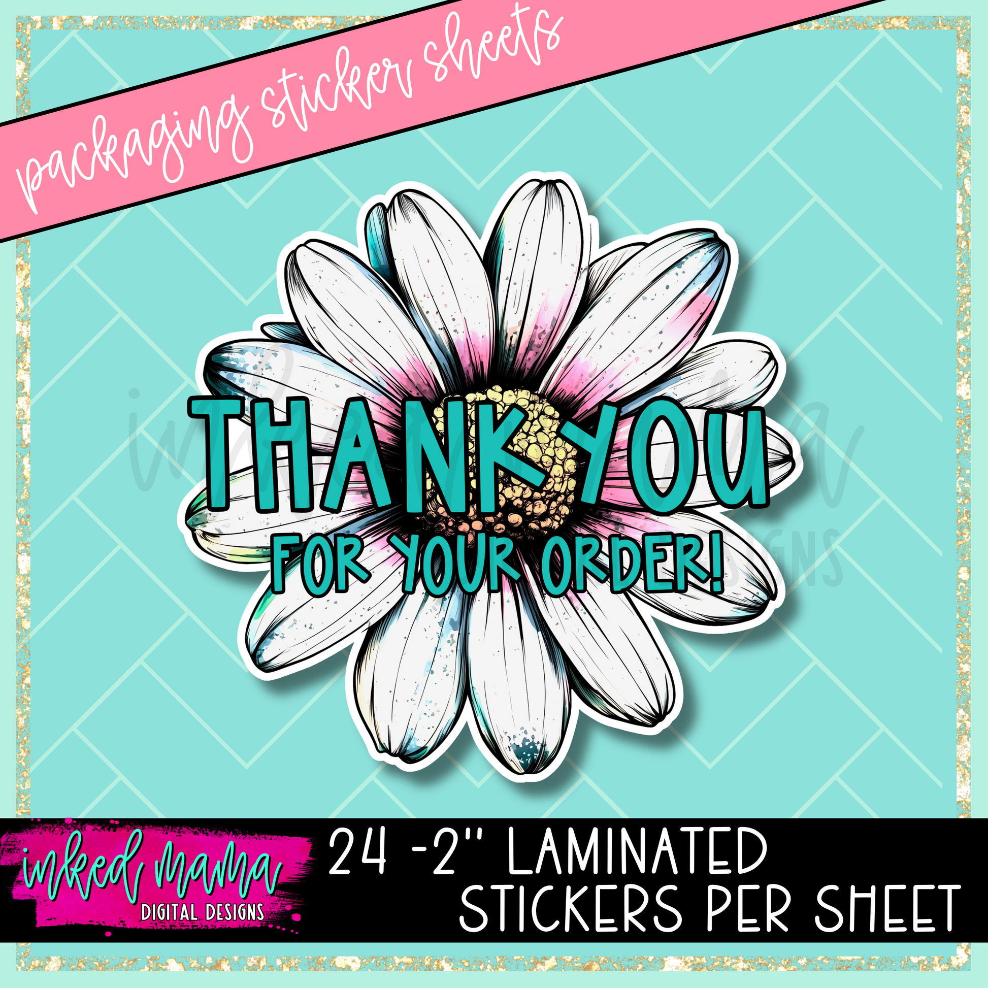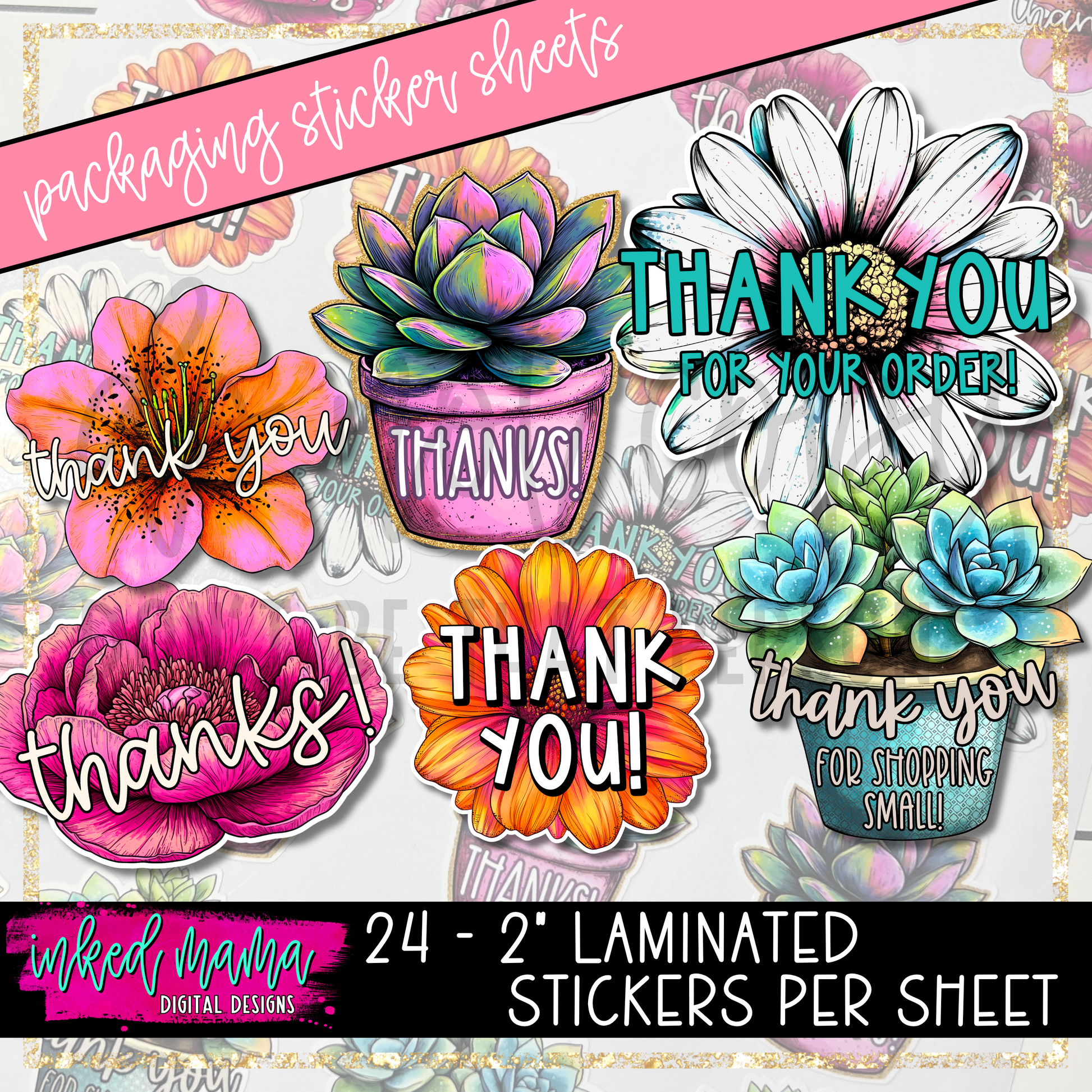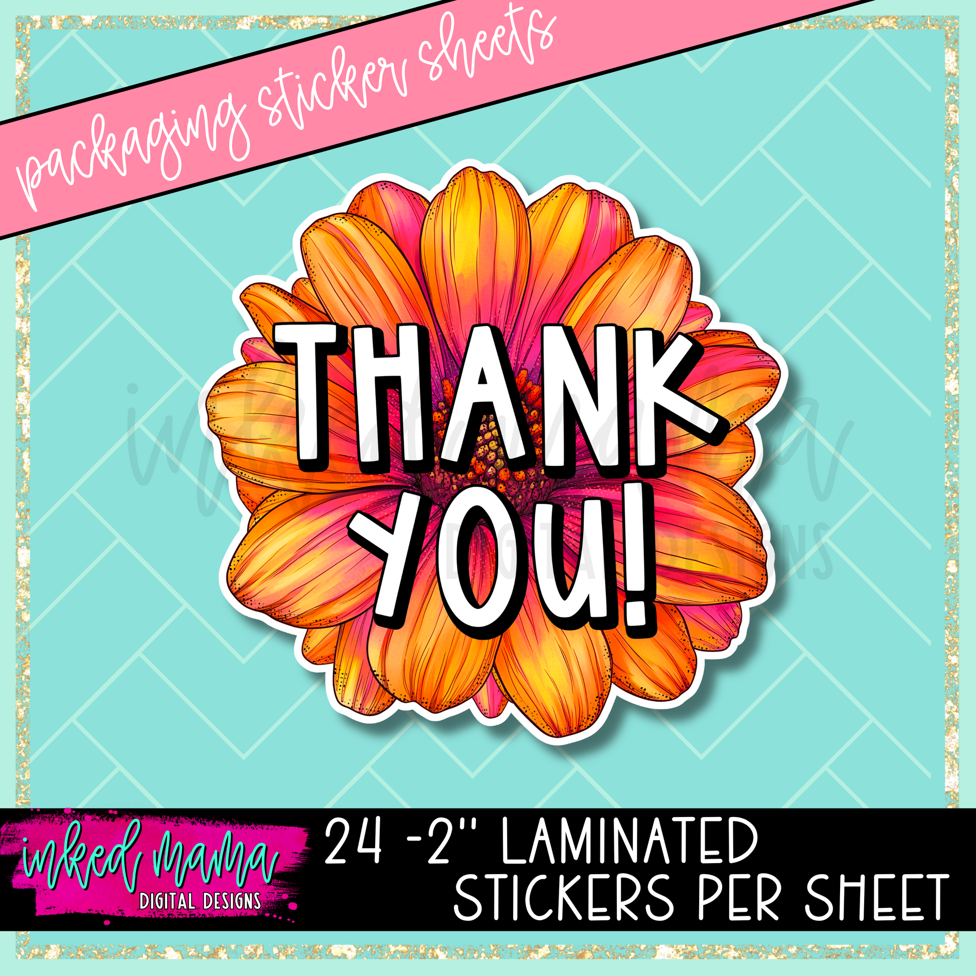 Bright Watercolor Thank You Flowers | Small Business Packaging Vinyl Stickers