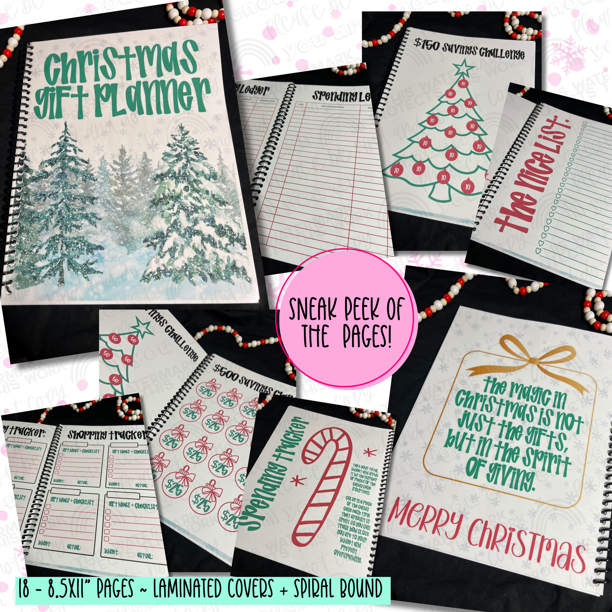 8.5x11" 18 page planner printed on cardstock, with laminated front/back cover + spiral bound.