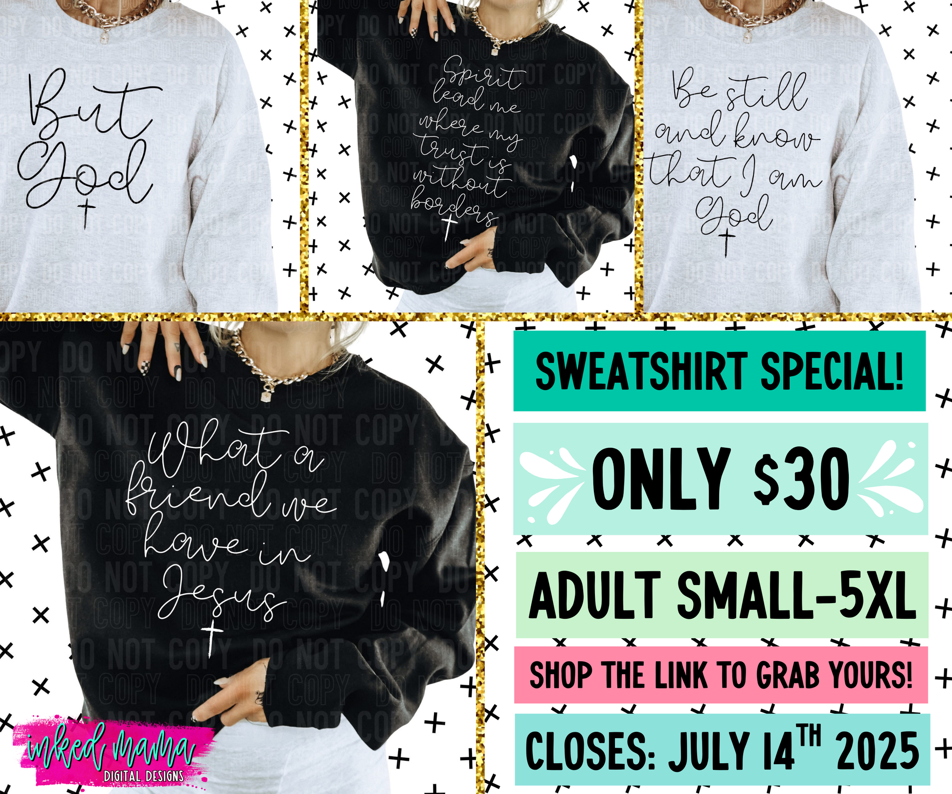 Faith Inspired Completed Crewneck Sweatshirts with Screenprint