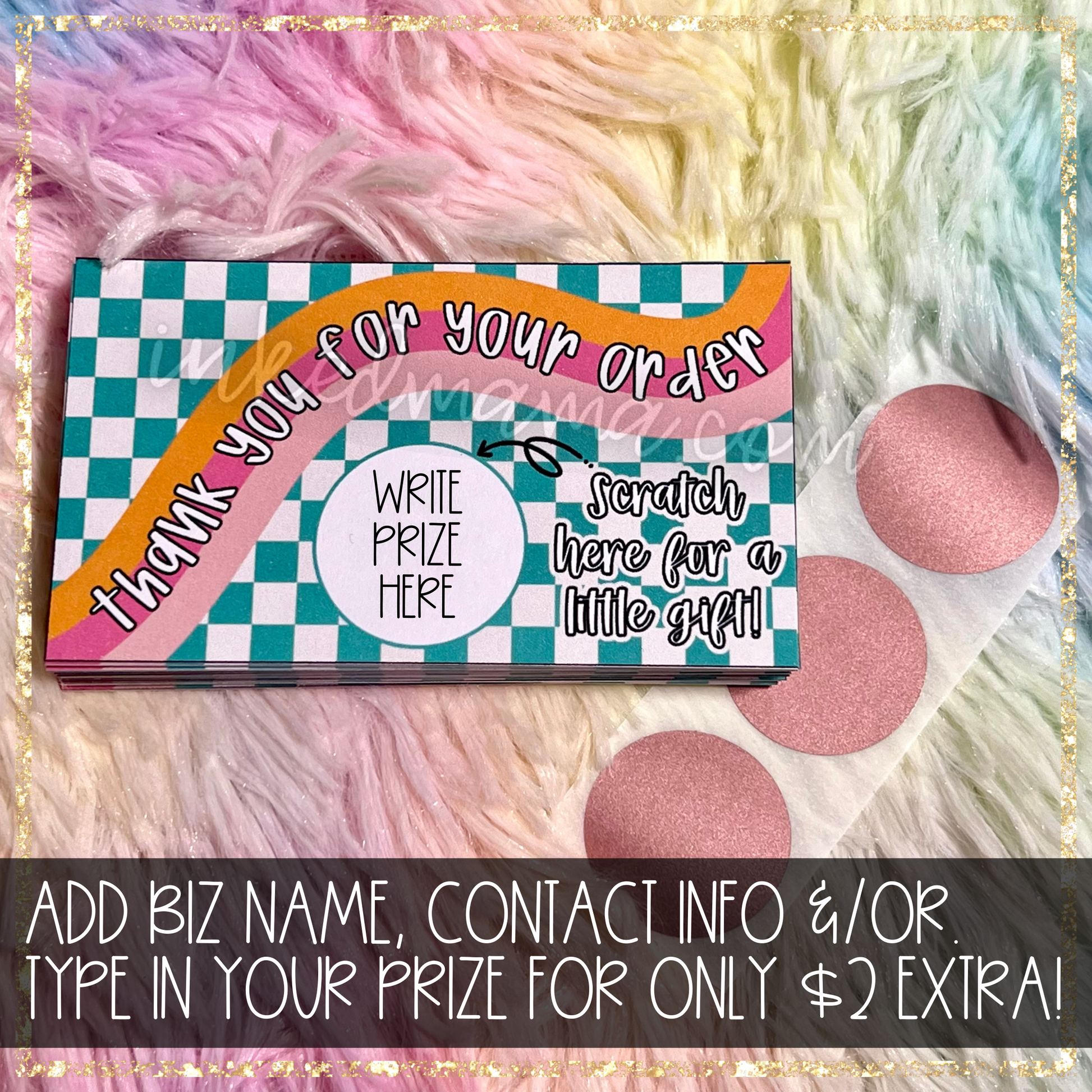 Green Checkered Board Retro Rainbow Scratch Off Thank You Cards | Small Business Print Branding Products