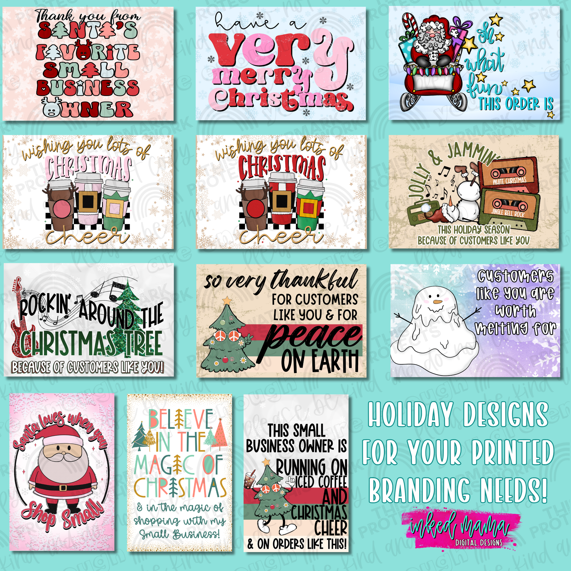Thank your clients in style this holiday season with our personalized Holiday 3.5x2" heavy cardstock mini thank you Cards! Show off your small business branding while expressing your gratitude in a super cute way <3