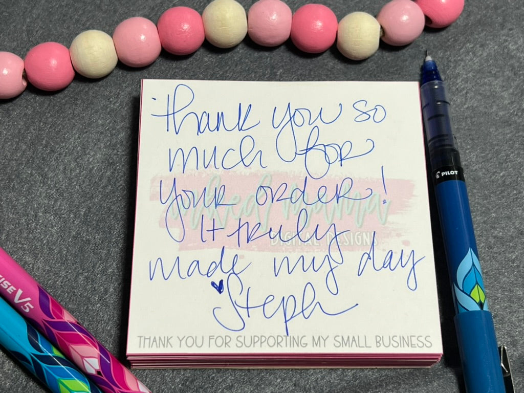 Want to add your social media handles, website or anything else on the bottom of the page? Add it below. Otherwise we will leave it as shown - "THANK YOU FOR SUPPORTING MY SMALL BUSINESS"