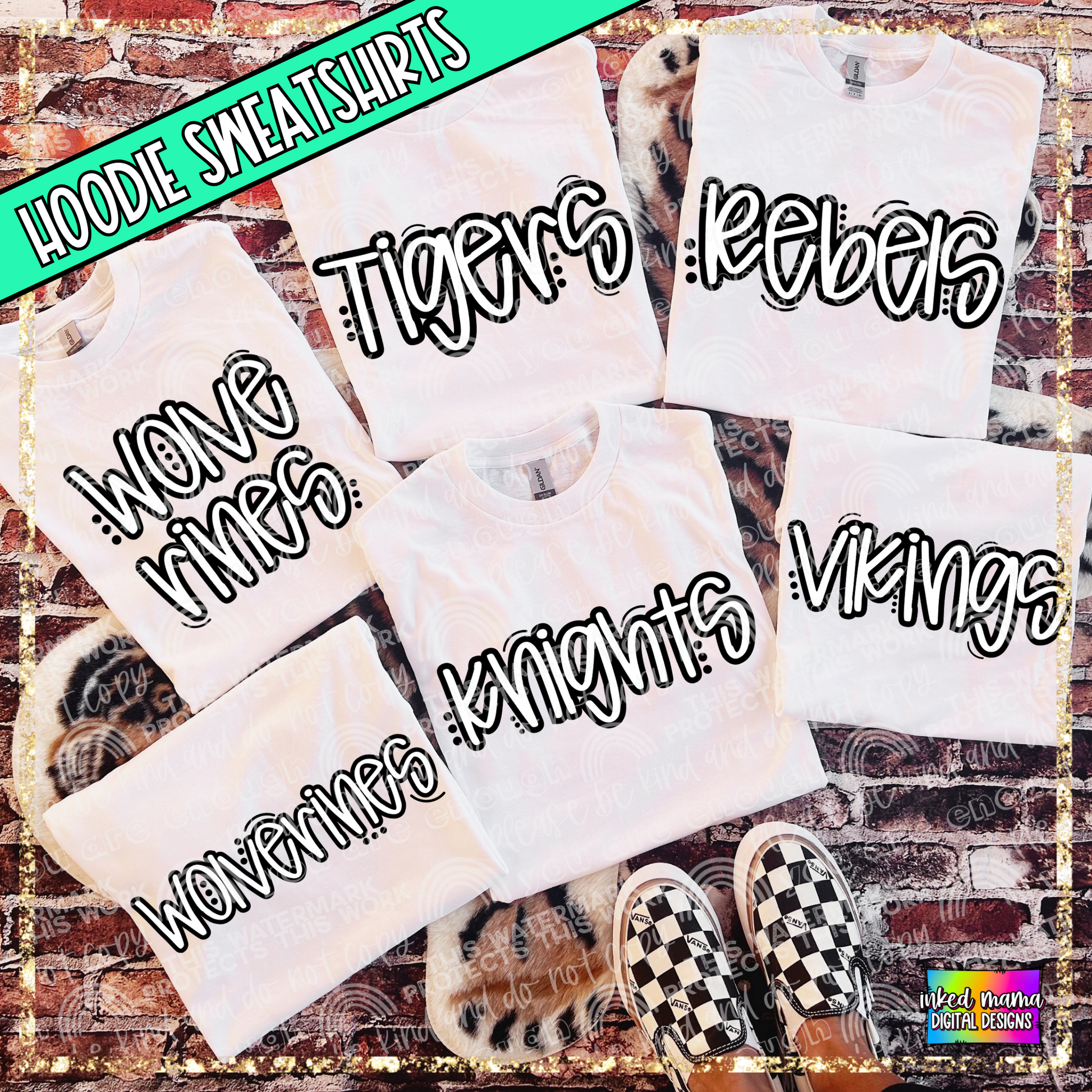 Mascot Doodle Hoodie Sweatshirt | School Spirit Completed Apparel | Sublimation Design