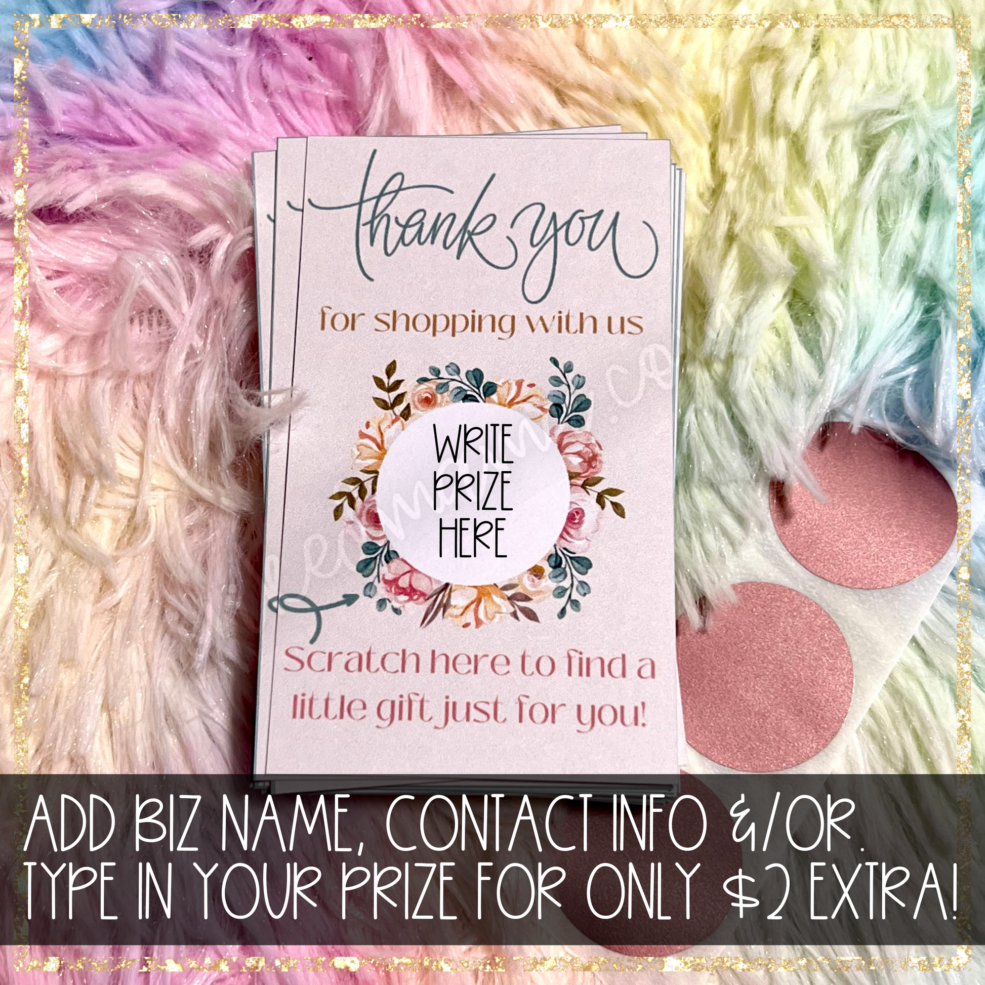 Neutral Floral Scratch Off Thank You Cards | Small Business Print Branding Products