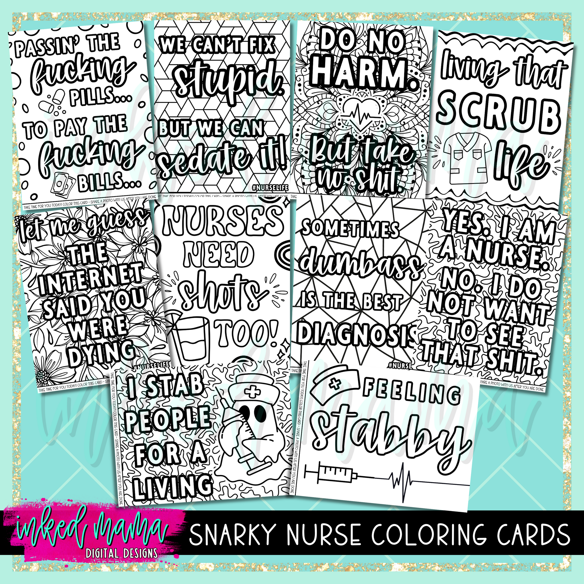 Snarky Nurse Coloring Cards | Small Business Packaging Fillers