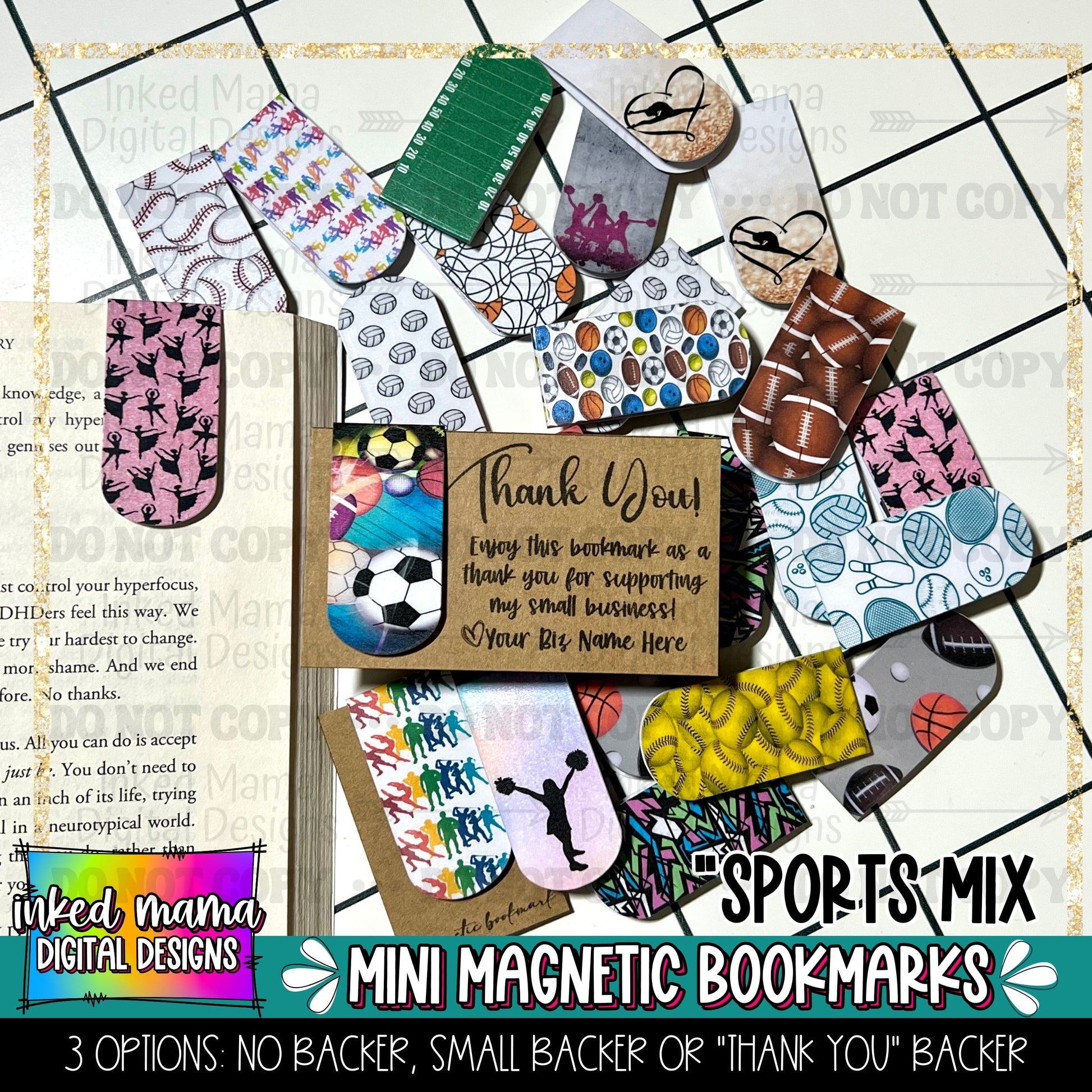Sports MIx | Mini Magnetic Bookmarks | Small Business Packaging Fillers