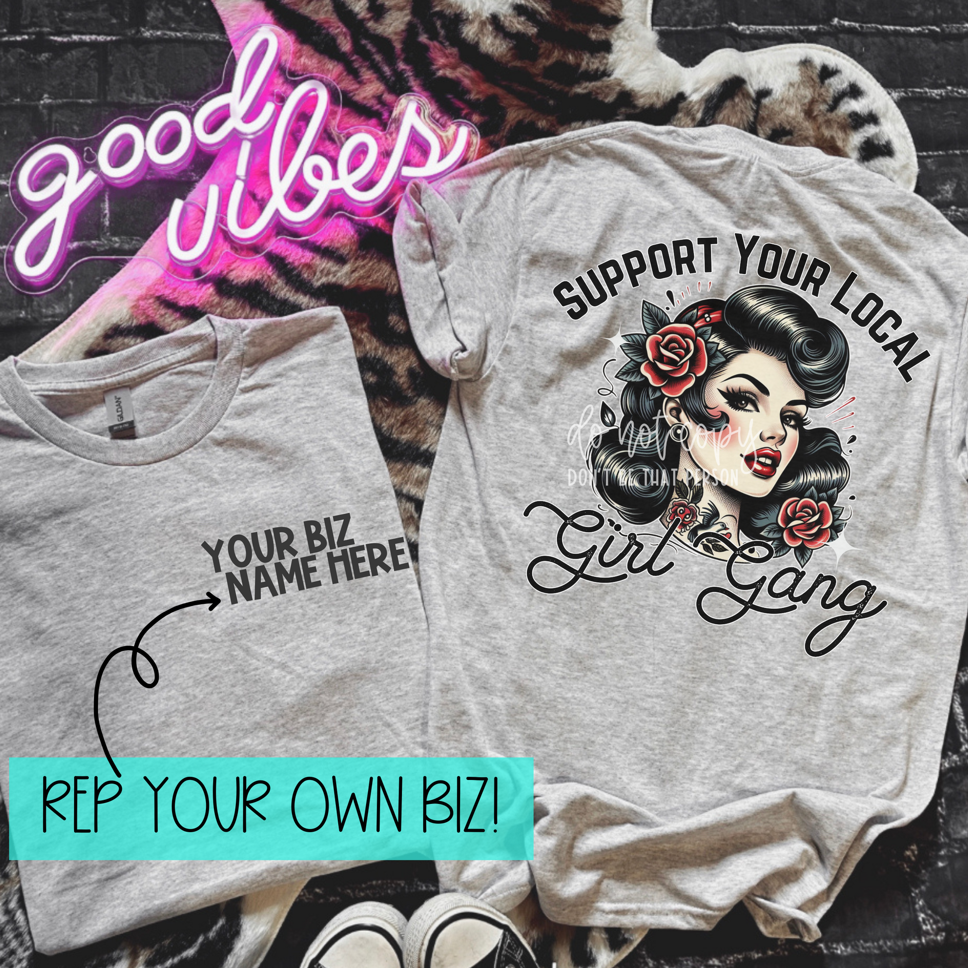 Support Your Local Girl Gang - Vintage | REP YOUR BIZ | Completed Sublimated Apparel