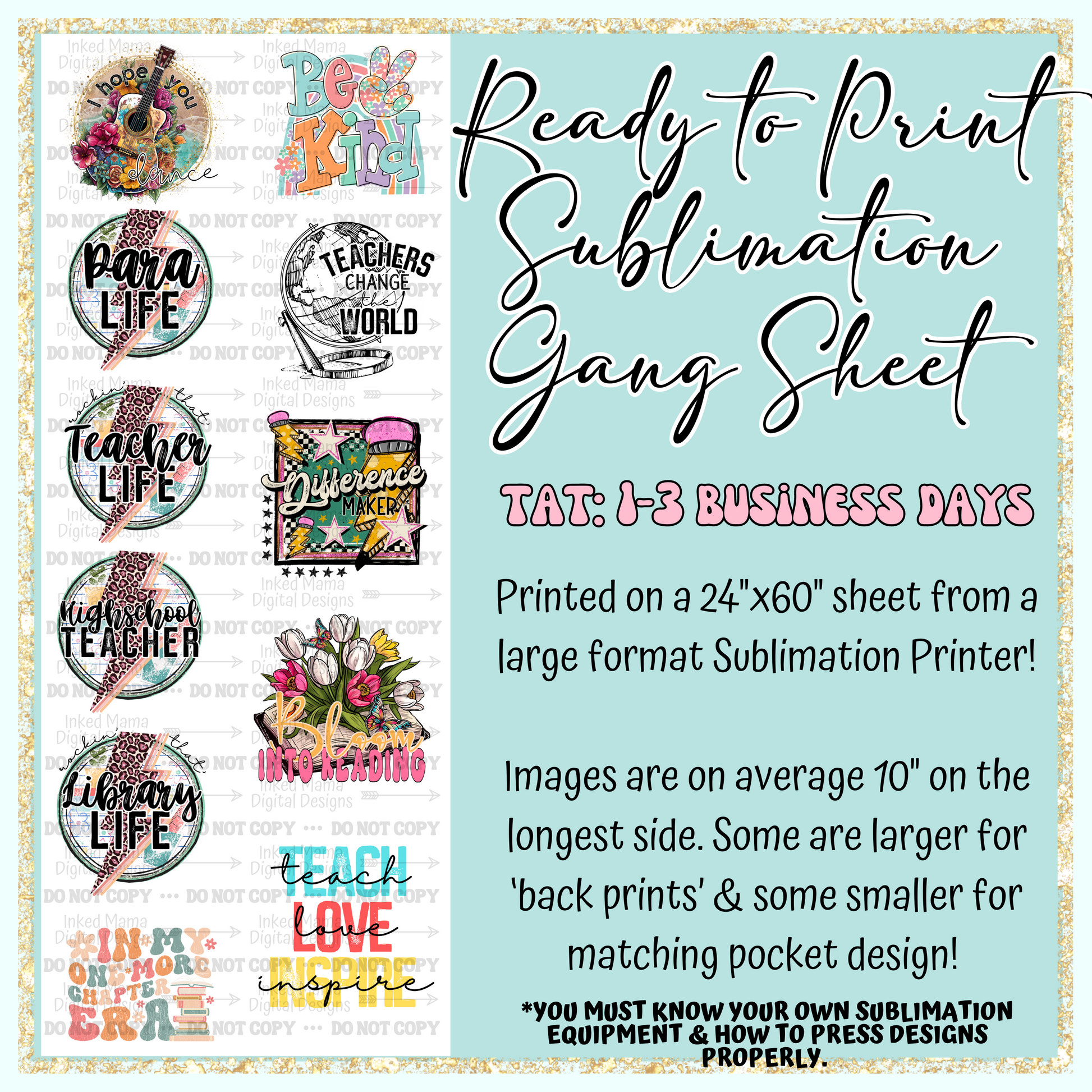 Teachers & Educators Collection | Ready to Print Sublimation Gang Sheet