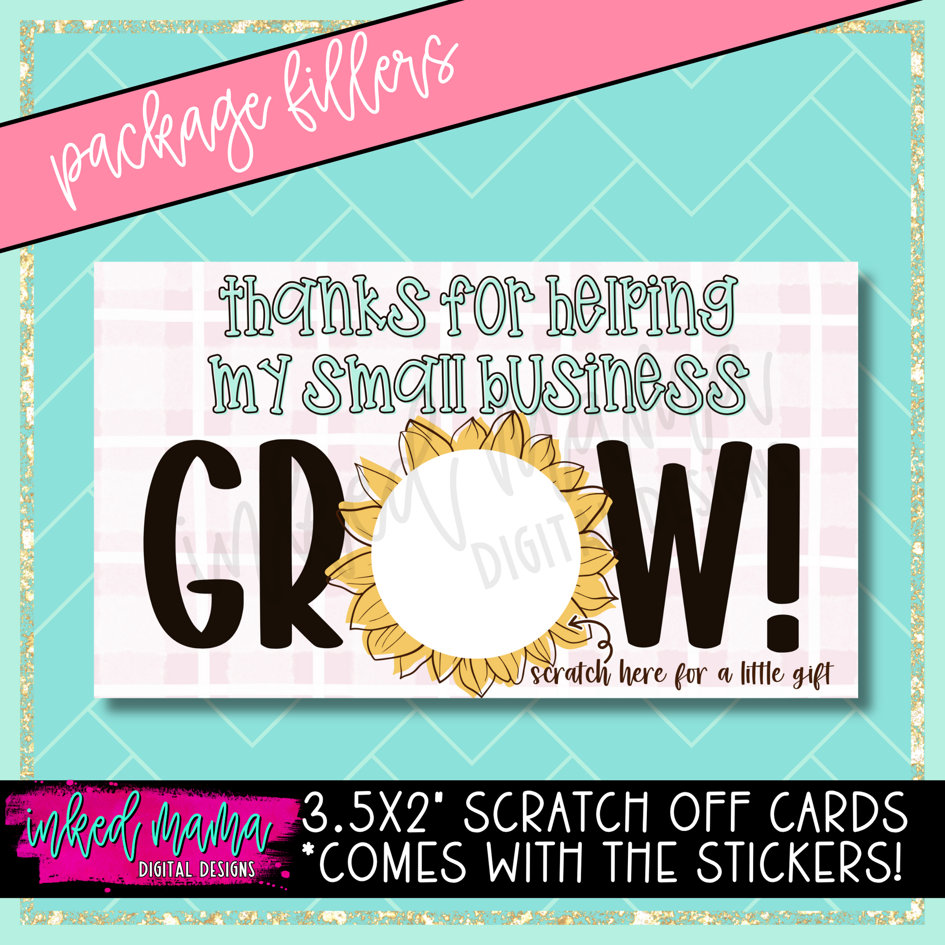 Thank you for helping my Small Business Grow | Sunflower Scratch Off Thank You Cards | Small Business Print Branding Products